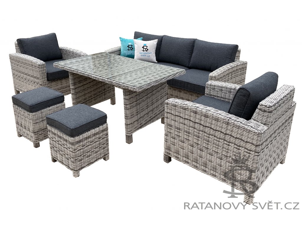 | Počet kusů v sestavě | 1x pohovka, 2x křeslo, 2x taburet, 1x jídelní stůl |